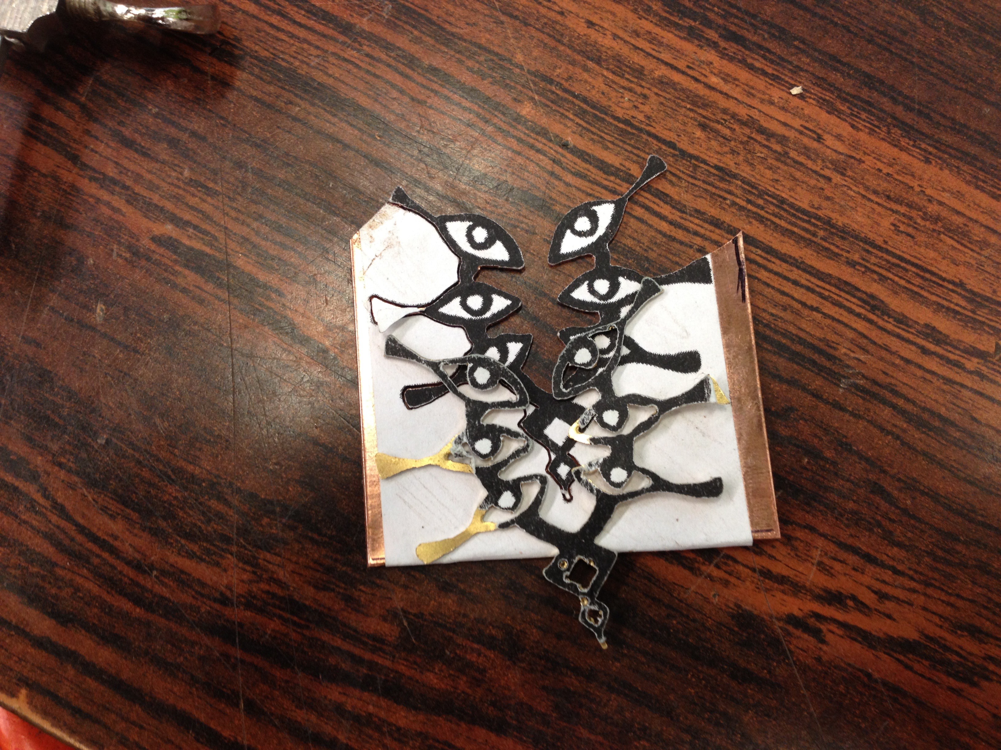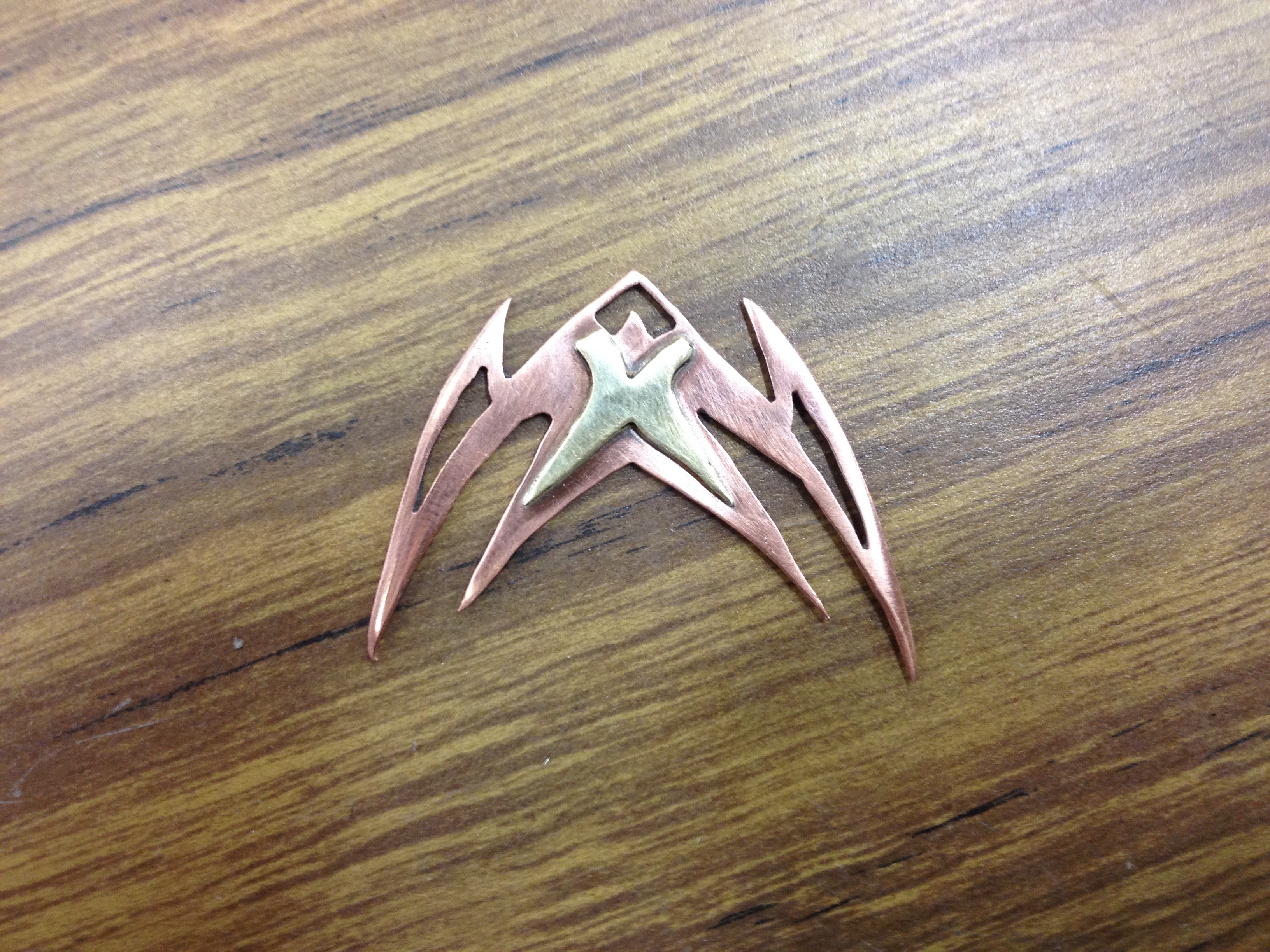 Creative Intro Project First bi-metal (copper & brass) creative project by Grade 12 student J.S., all done with the jeweller’s saw. Fabulous work!