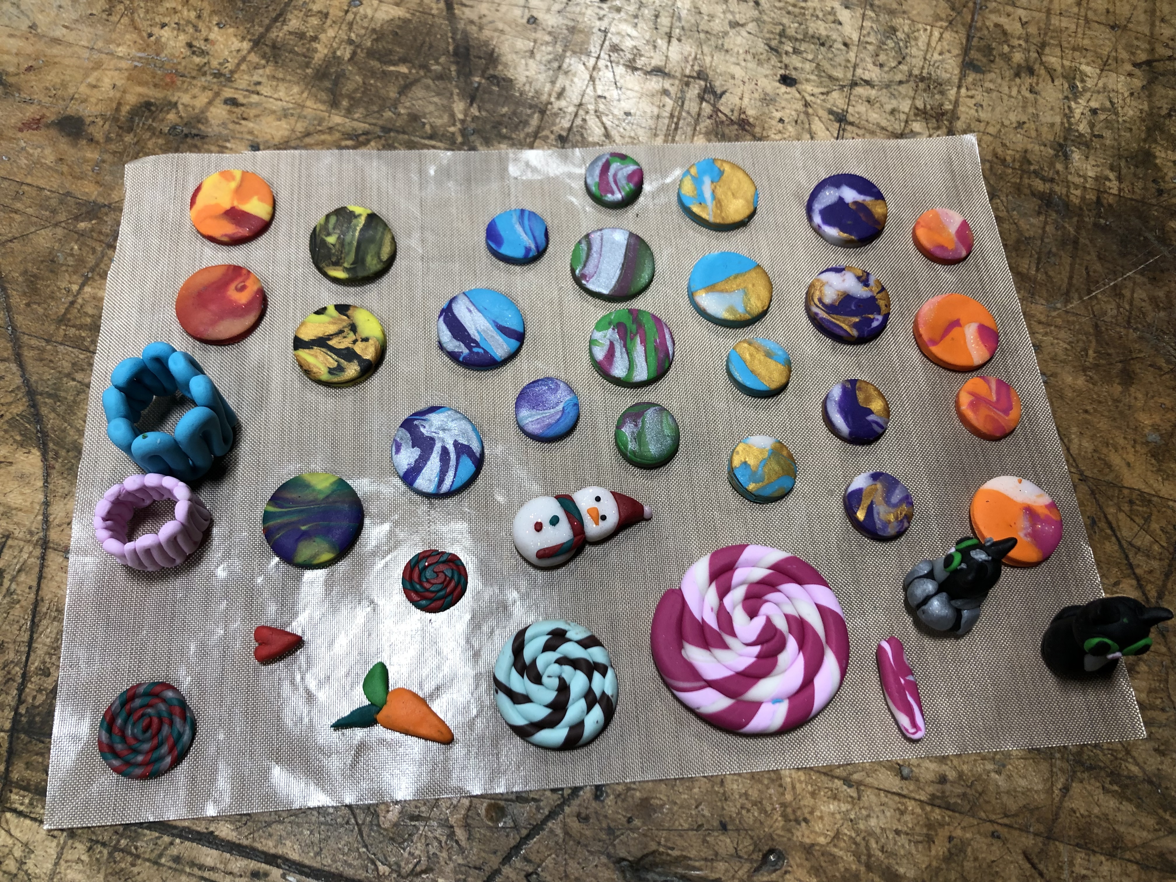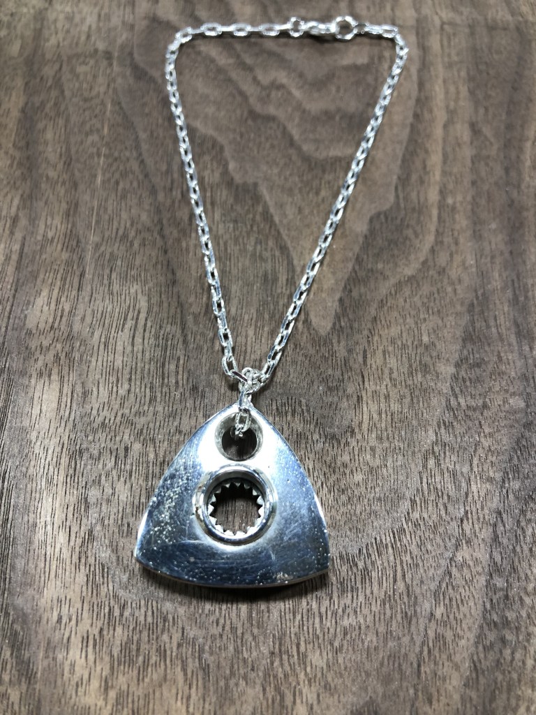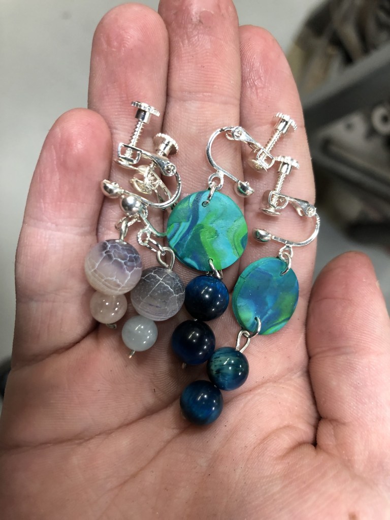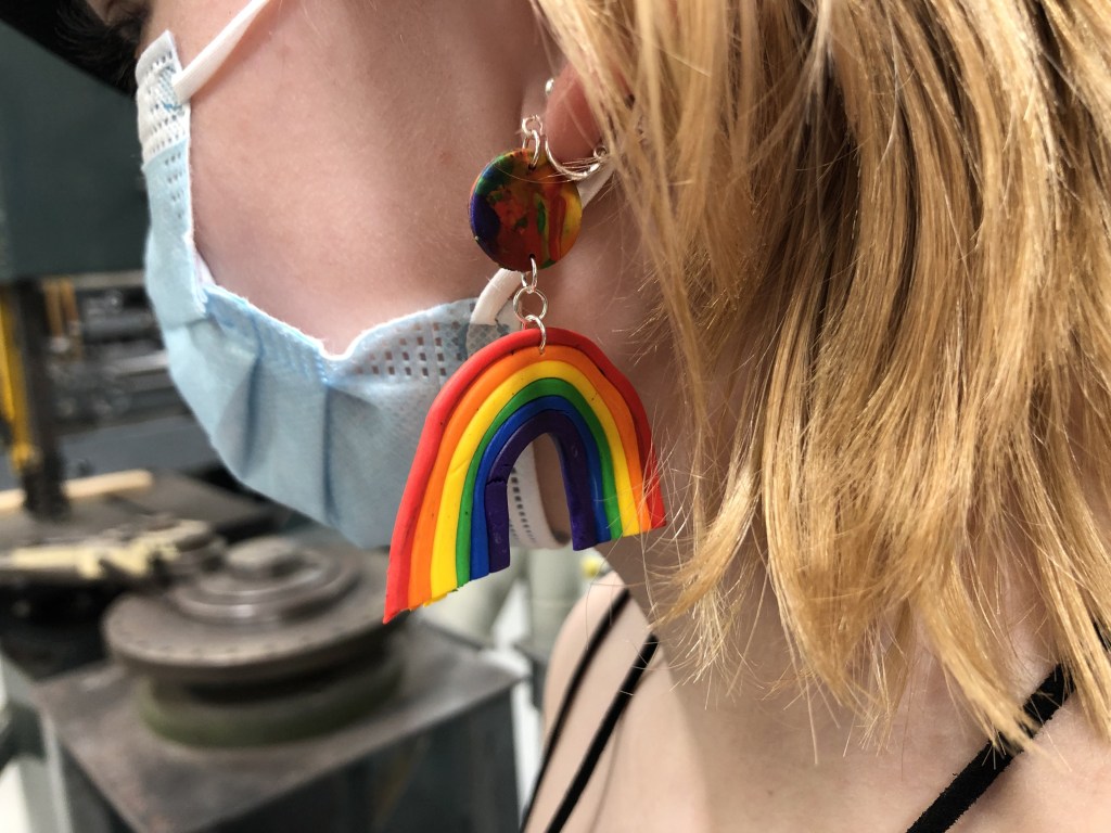 Some incredible projects from our Spring 2022 Jewelry 11/12 crew! Fidget ring featuring copper enamelled flower with a handmade sterling rivet made by S.V., Sterling silver feathered earcuffs made by K.C. (and worn to their grad ceremony in June!), and a stone set pendant by W.J.. Great job, everyone!