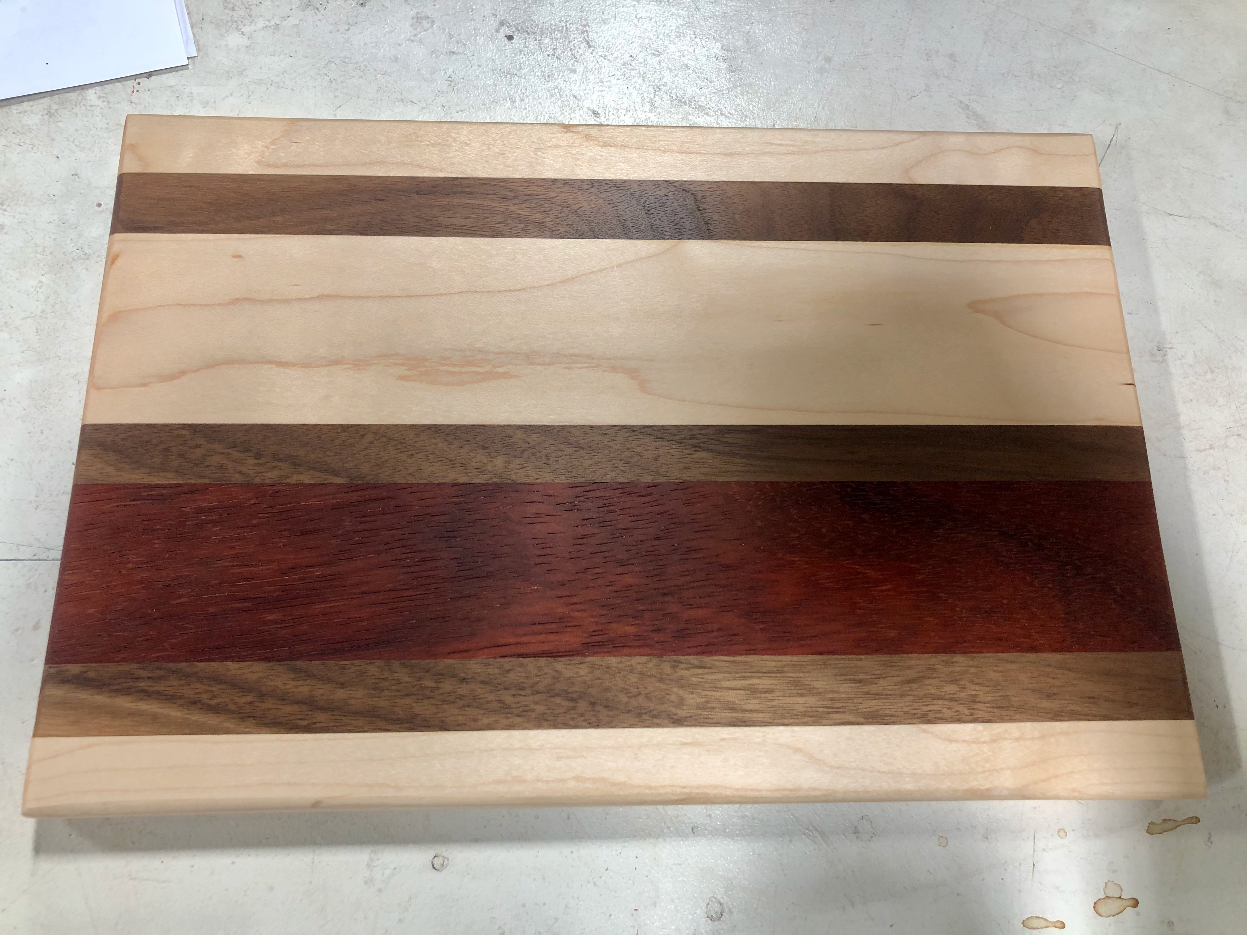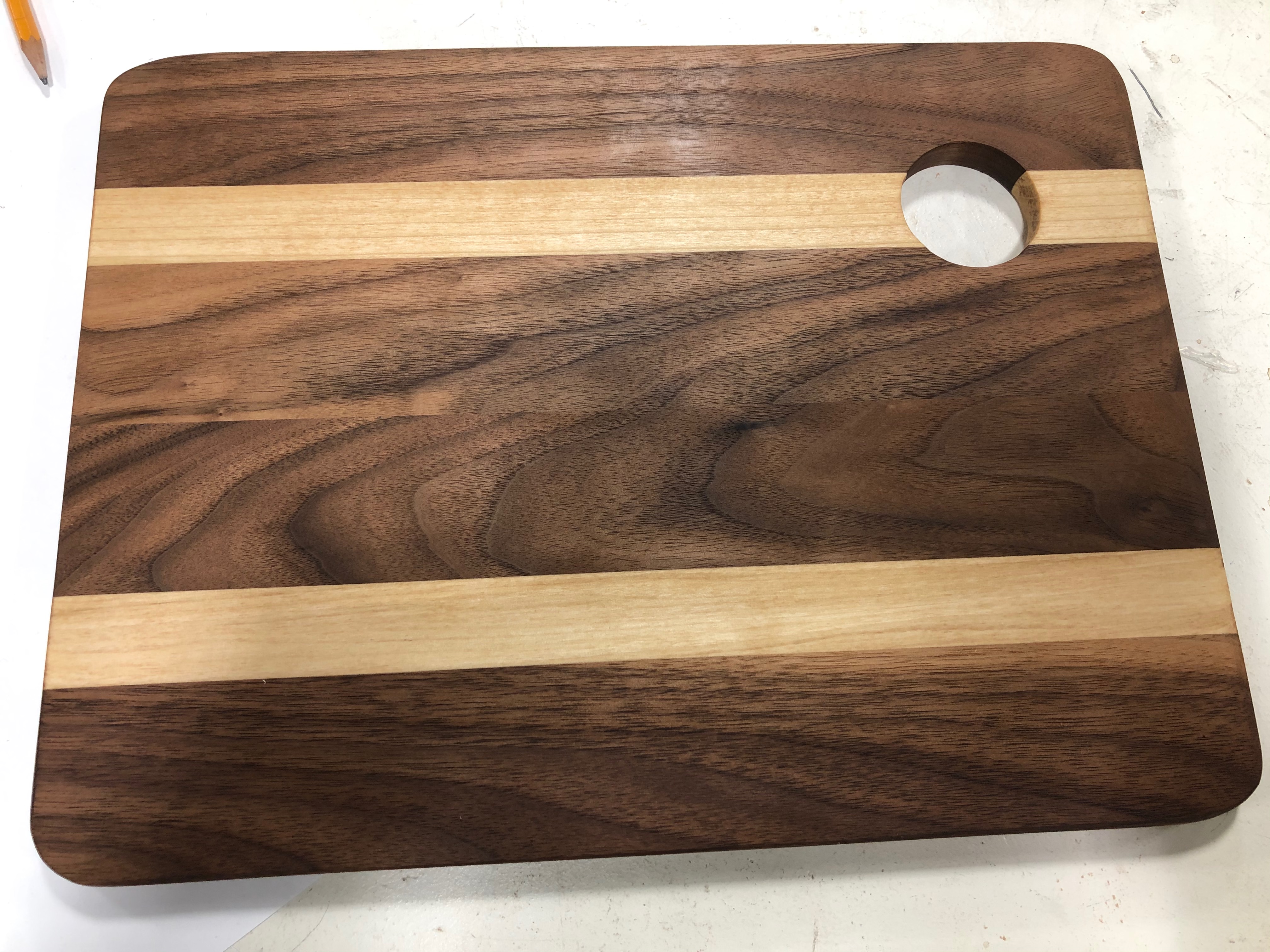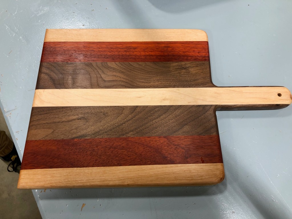 Very creative self-directed “drunken cutting board” done by JV in Spring 2018. Lots of work and patience went into this inaugural project – great job!