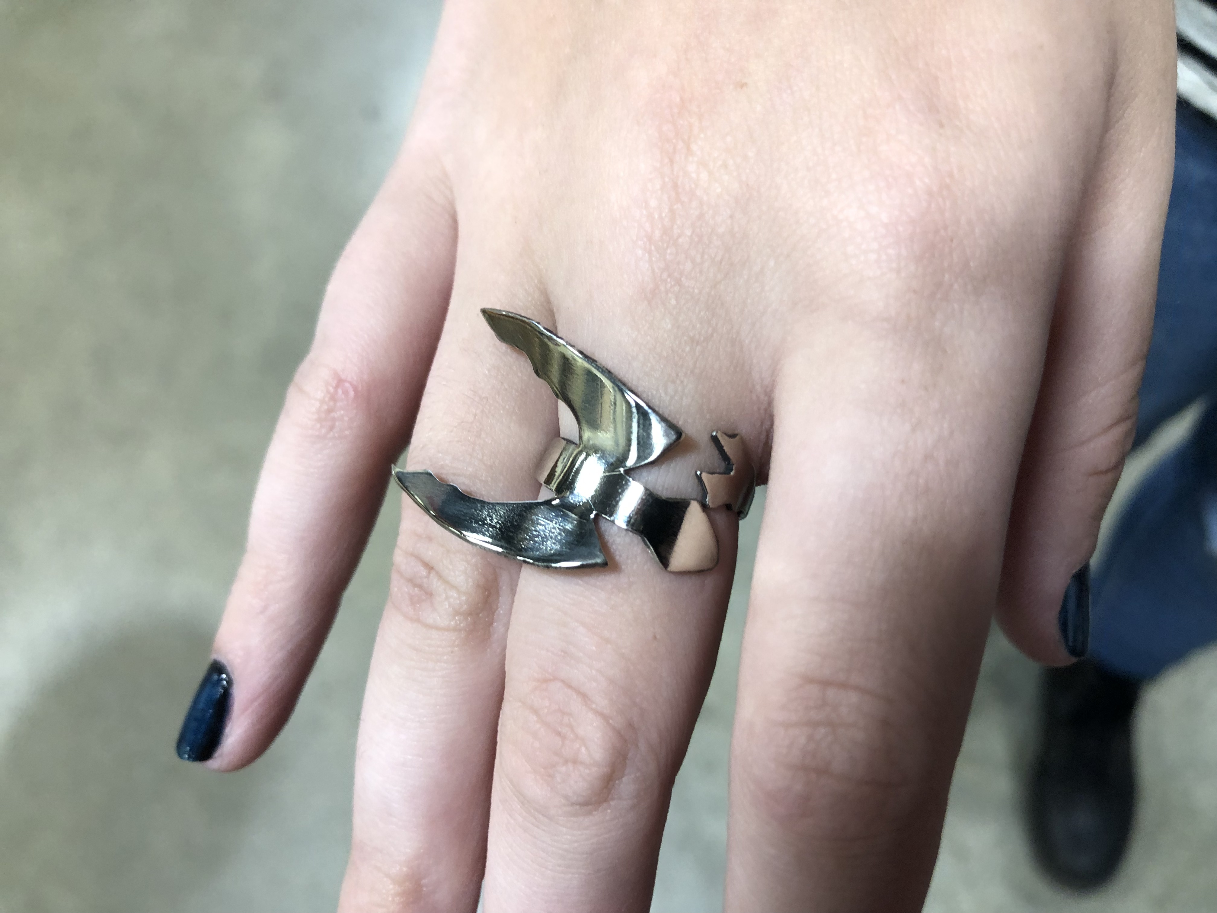 Students in both Junior and Senior Jewelry get to try their hand at ring-making, and create progressively more challenging projects. These students decided to try their hand at a ‘braided’ and intro to ‘filigree’ ring, where they up-cycled old electrical wire and annealed with a torch as they shaped it. Excellent work, A.K. and L.J.!