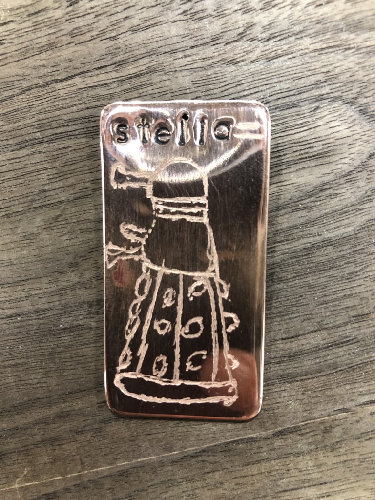 First up: some examples of our first project in Grade 8, a copper keychain/pendant! Students learn the basics of filing, sanding, drilling, annealing, stamping, texturing, tempering, as well as adding a patina and buffing. Awesome work, everyone!